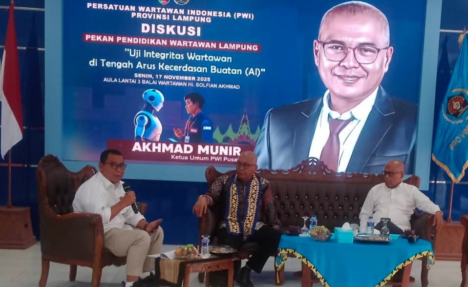 Berbicara dalam Diskusi Arus Kecerdasan Buatan di Kantor PWI Lampung, Senin (17/11/2025), Munir mengatakan AI memang menawarkan efisiensi luar biasa. “AI bisa sangat membantu, baik dalam membuat ilustrasi, gambar atau foto, membantu riset, hingga pengumpulan data seperti data UMKM, pendapatan daerah, angka pengangguran, dan lain-lain,” ujarnya.