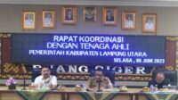 Pemkab Lampura, Rakor Perdana bersama 7 Tenaga Ahli, Bahas Langkah Strategis dalam Mendorong Percepatan PembangunanLampung Utara|Juni 7, 2023oleh Today2Lampung Utara: Pemerintah Kabupaten Lampung Utara, Bupati Lampura. Budi Utomo yang diwakili