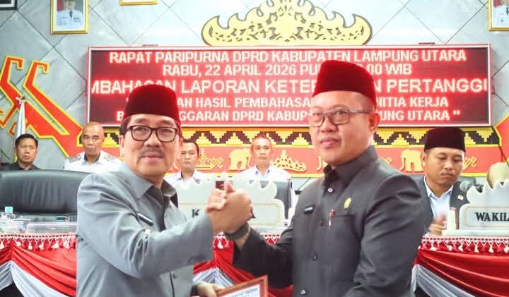 Penegasan itu disampaikan dalam sidang paripurna DPRD Lampung Utara, Rabu (22/4/2026), saat agenda penyampaian pendapat akhir bupati atas hasil pembahasan LKPJ.