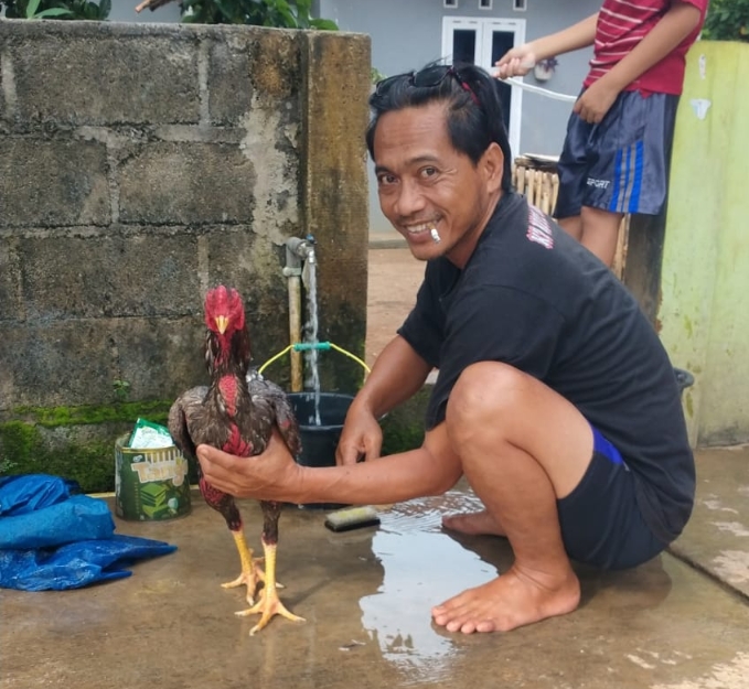 Mandikan ayam secara rutin, terutama sebelum bertarung, untuk menjaga kebersihan bulu dan kulit.