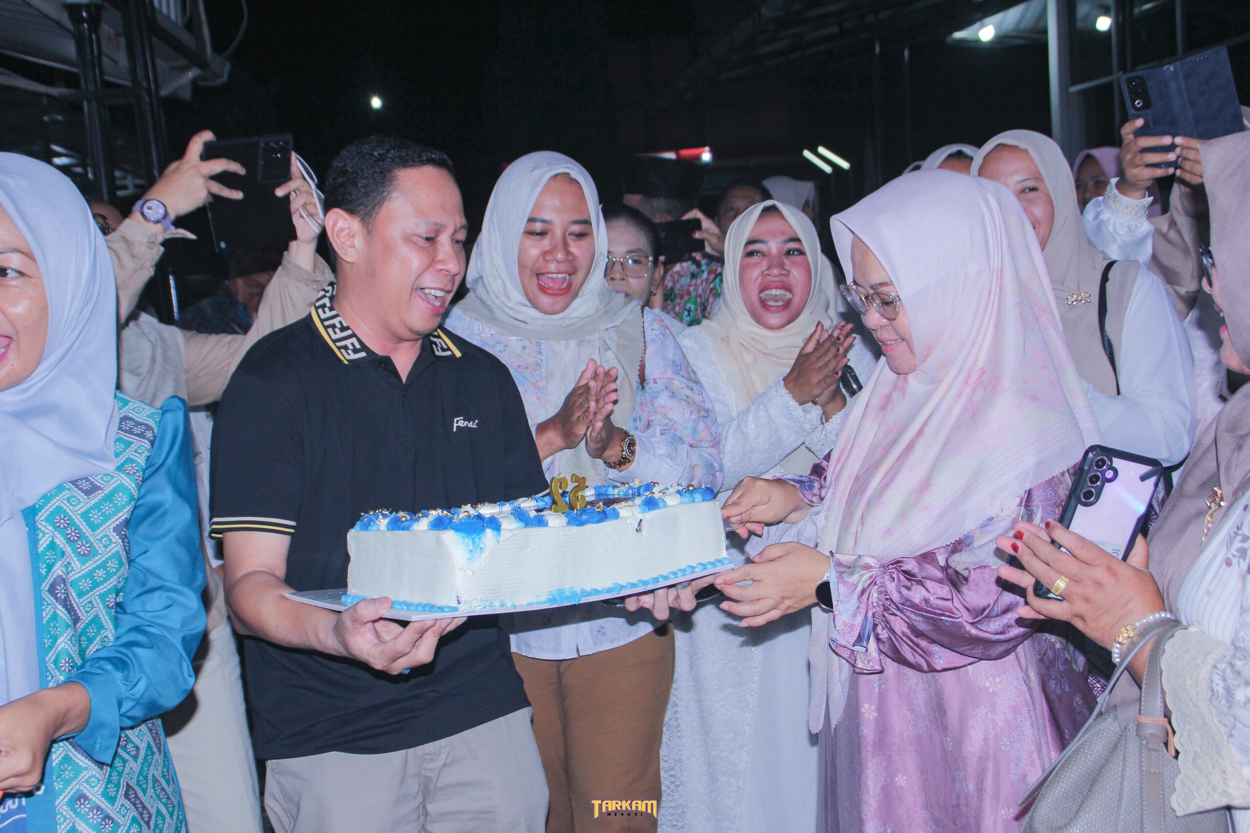 MESUJI : Suasana kediaman Rumah Dinas Bupati Mesuji mendadak riuh dan penuh kehangatan pada Rabu malam (14/04/2026). Ratusan tenaga pendidik dari seluruh penjuru Kabupaten Mesuji berkumpul untuk memberikan kejutan spesial dalam rangka memperingati Hari Ulang Tahun Bupati Mesuji Hj Elfianah yang ke 52.