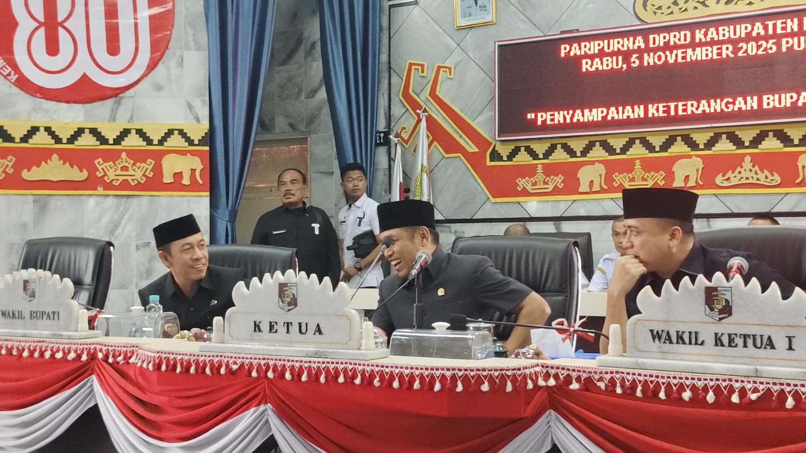 Lampung Utara: DPRD Kabupaten Lampung Utara menggelar Rapat Paripurna Penyampaian Nota Keuangan dan Rancangan Peraturan Daerah (Raperda) APBD Tahun Anggaran 2026 bersama Pemerintah Daerah, Rabu (5/11/2025). Sidang dipimpin Sekretaris DPRD Lampung Utara, Eka Dharma Tohir, dan dinyatakan kuorum dengan kehadiran 25 anggota dewan—21 hadir langsung dan 4 mengikuti secara daring.
