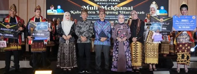 Lampung Utara: Pemerintah Kabupaten Lampung Utara melalui Dinas Pariwisata dan Kebudayaan Kabupaten Lampung Utara menegaskan komitmennya membina generasi muda berkarakter melalui ajang Grand Final Pemilihan Muli Mekhanai yang digelar di Gedung Pusiban Agung, Senin (27/4/2026) malam.