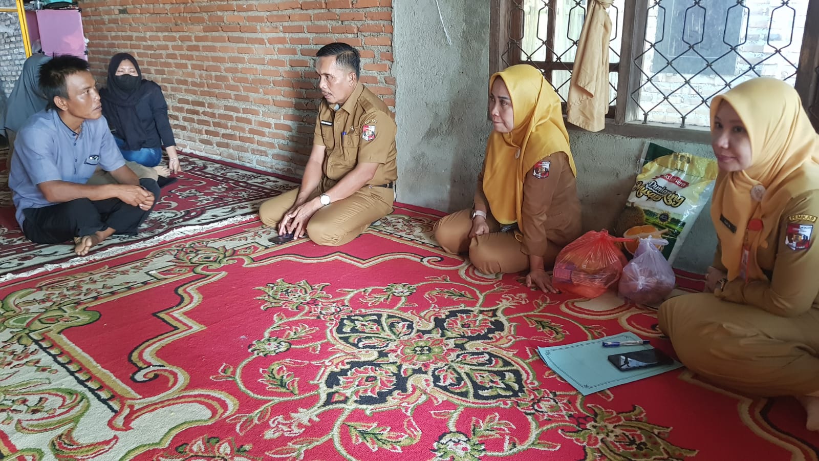 Sebelum berpamitan pulang, kadis sosial menyerahkan bantuan berupa sembako untuk kebutuhan sehari – hari bagi para keluarga korban.