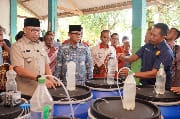 Gubernur Lampung Rahmat Mirzani Djausal bersama Bupati Lampung Tengah meninjau lokasi pembuatan POC di Kecamatan Seputih Raman, Lampung Tengah, Rabu (31/7/2025). Dalam kesempatan itu, Gubernur menyaksikan hasil olahan 2.000 liter POC yang siap dibagikan kepada petani.