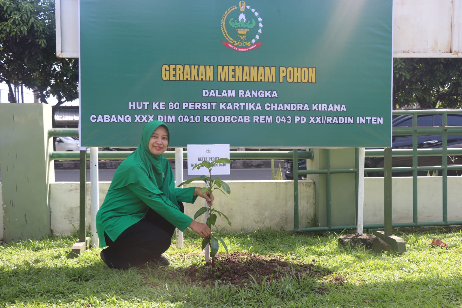 Bandar Lampung: Dalam rangka memperingati Hari Ulang Tahun (HUT) ke-80 Persit Kartika Chandra Kirana (KCK), Persit KCK Cabang XXX Dim 0410 Koorcab Rem 043 PD XXI/Radin Inten menggelar kegiatan gerakan menanam pohon di Pos Ramil Kecamatan Kemiling, Kota Bandar Lampung, Kamis (16/4/2026).
