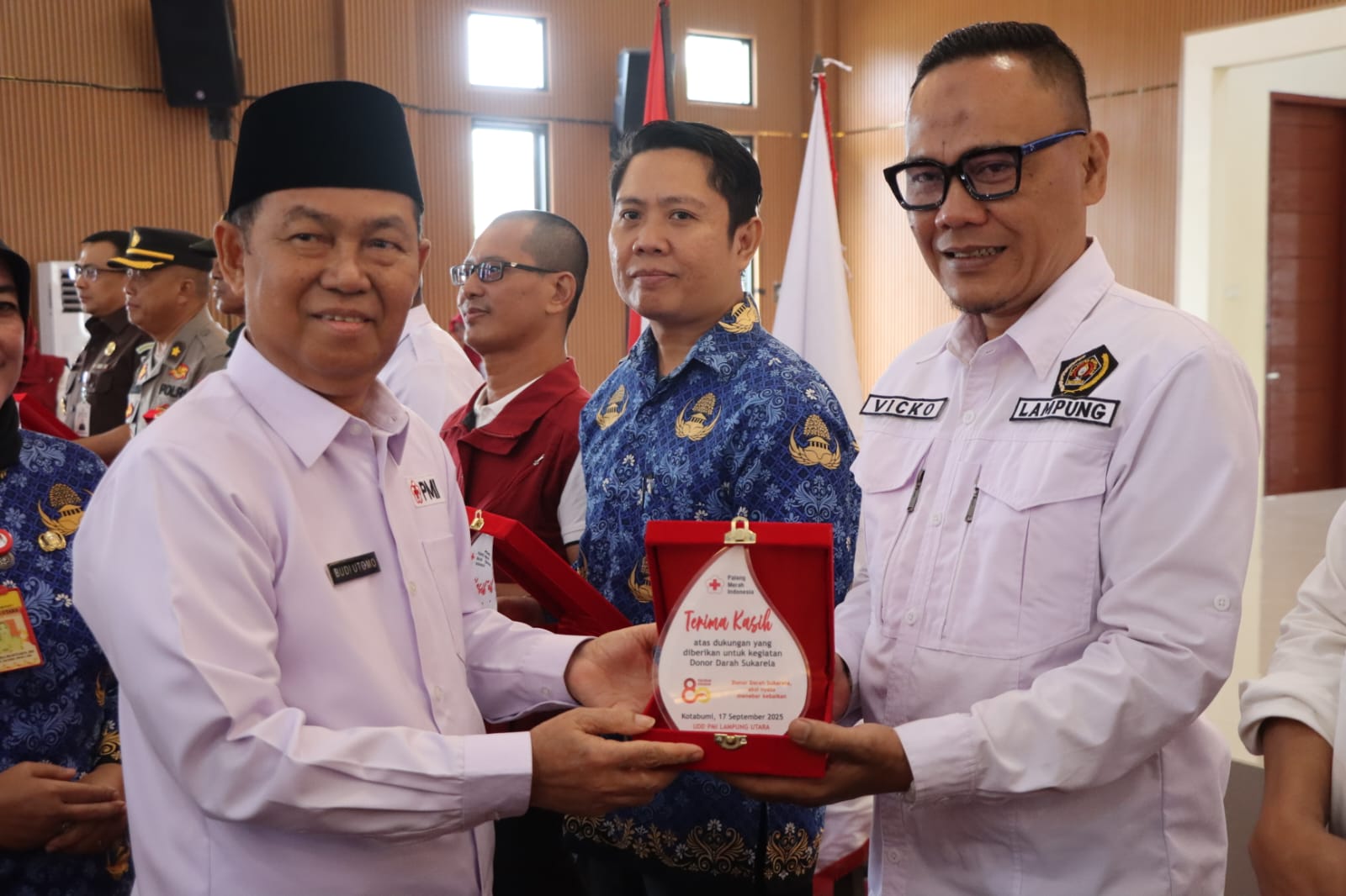 Lampung Utara : Perayaan Hari Ulang Tahun (HUT) ke-80 Palang Merah Indonesia (PMI) Lampung Utara (Lampura) berlangsung penuh makna. Dalam acara yang digelar di Gedung Pusiban Agung, Kotabumi, Rabu (17/9/2025) PMI Lampura memberikan penghargaan khusus kepada Persatuan Wartawan Indonesia (PWI) Lampura, sejumlah instansi, serta para pendonor darah terbanyak atas dedikasi mereka dalam mendukung kegiatan donor darah sukarela.