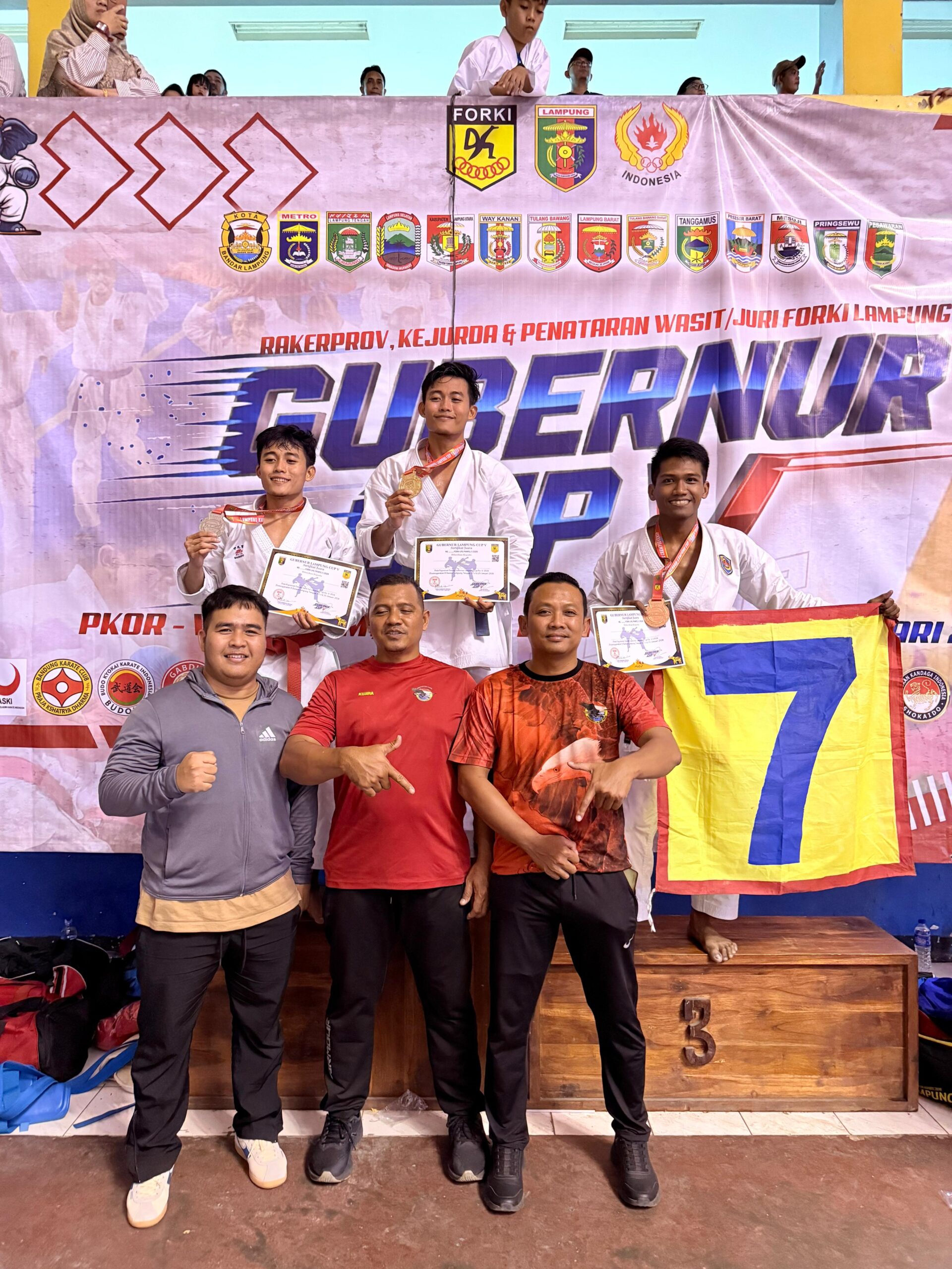 Bandar Lampung : Prajurit Batalyon Infanteri (Yonif) 7 Marinir, Brigif 4 Marinir/Besar Selatan (BS), Korps Marinir TNI Angkatan Laut, kembali menunjukkan kualitas dan profesionalismenya dengan menorehkan prestasi gemilang pada Kejuaraan Karate Gubernur Cup V Tahun 2026 yang digelar di GOR Sumpah Pemuda, PKOR Way Halim, Bandar Lampung, Minggu (25/1/2026).