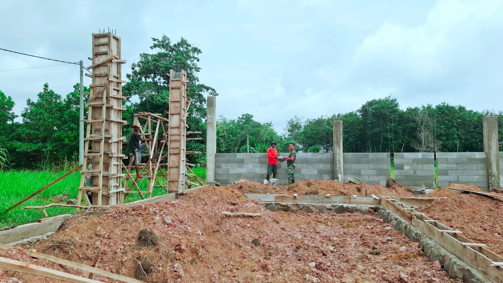 Sejumlah item pekerjaan utama telah diselesaikan, di antaranya pasangan pondasi dan sloof bawah keliling yang sudah rampung 100 persen, pengecoran tiang juga selesai seluruhnya, pemasangan hebel mencapai sekitar 50 persen, serta timbunan tanah yang telah berada di titik lokasi dan tinggal diratakan.