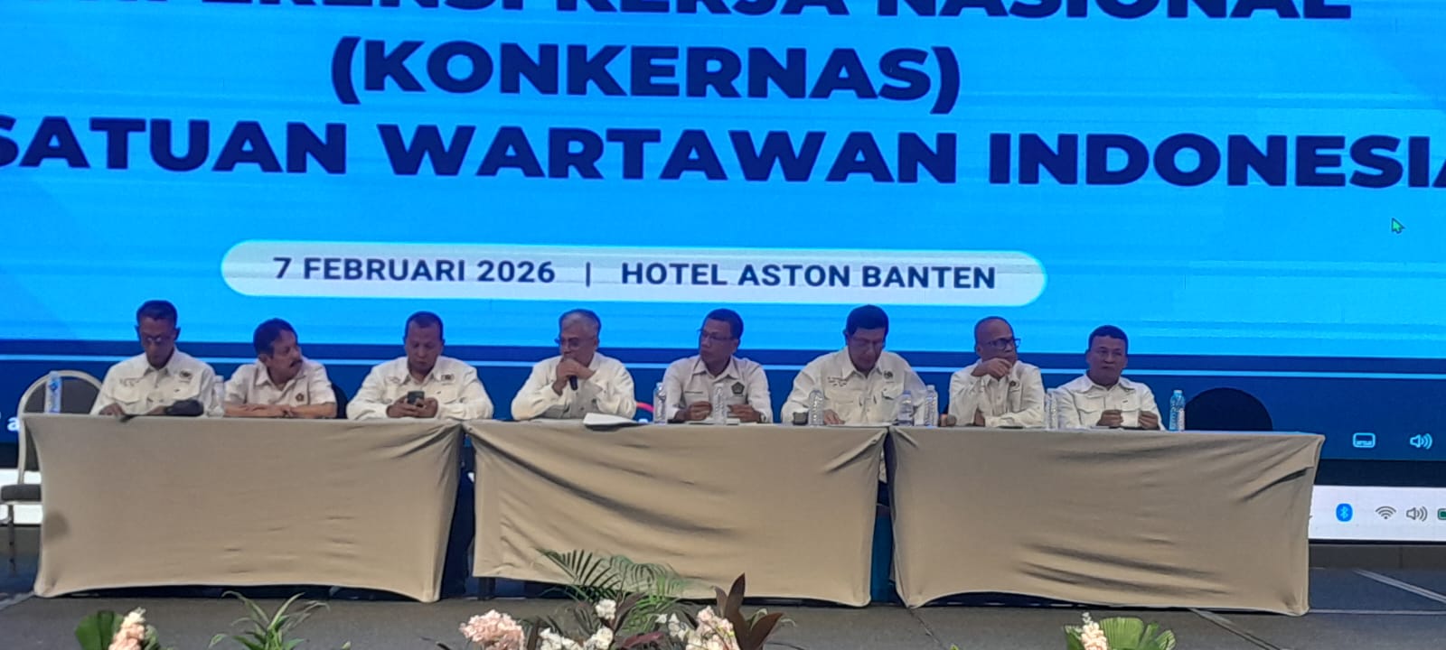 Serang : Jajaran Pengurus PWI Lampung ikut menghadiri dan membahas Rapat Kerja Nasional Persatuan Wartawan Indonesia 2026 di Hotel Aston – Serang Banten, Sabtu (7/2/ 2026).